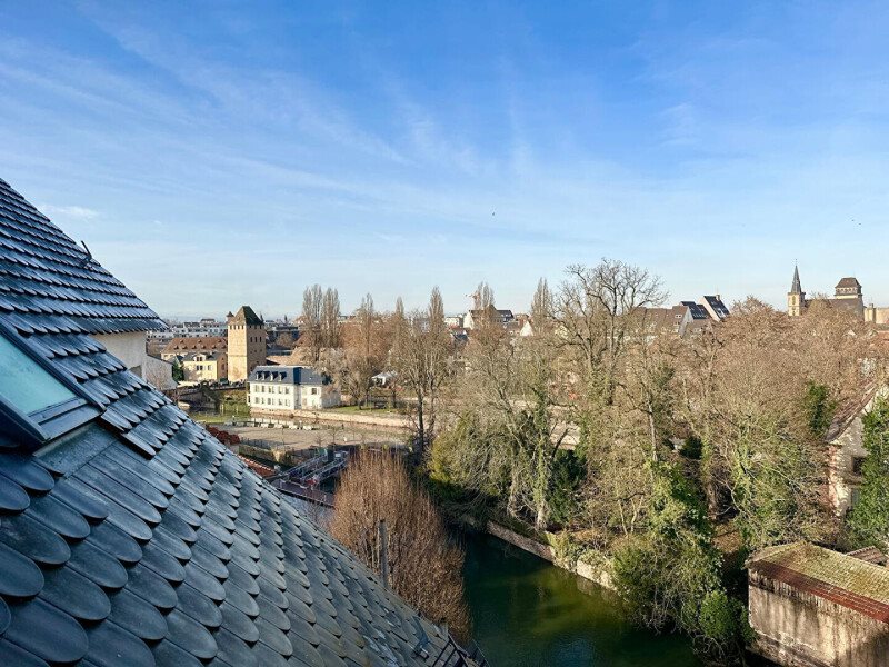 Magnifique duplex à la petite France dans une des copropriétés les plus prisées du secteur! Niché au 7 ème étage d'un immeuble de standing, vous serez séduits par ce bel appartement atypique de 46,99m2 carrez et 56,25 au sol, traversant, avec 2 balcons et sur...