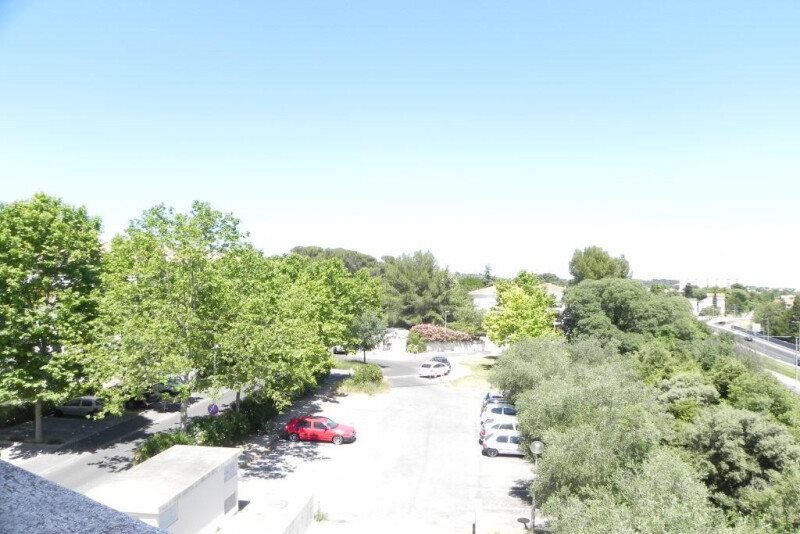 Montpellier Aiguelongue Prox Tram N°2, dernier étage résidence récente Studio avec belle terrasse, vue dégagée, parking privatif sécurisé, disponibilité immédiate, loyer 489€ charges comprises (dont 41€de provisions sur charges, Teom, entre parties communes., provision eau froide), dépôt de garantie 448€, frais agence part locataire 260€ Ttc.