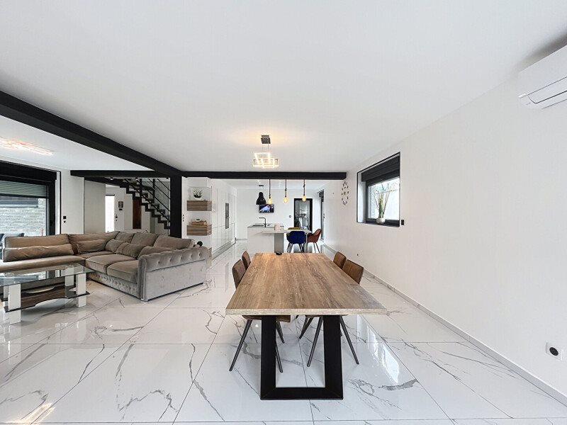 Laforêt Lille vous présente cette magnifique maison contemporaine de 2022 de 170m2 habitable située à proximité de toutes les commodités. Elle est composée d'une grande allée permettant le stationnement de 5 véhicules en plus du garage attenant, un hall d'entrée don...
