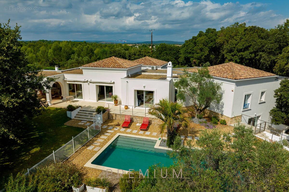 À seulement quelques minutes au Nord-Ouest de Montpellier, dans un environnement préservé et verdoyant, découvrez cette villa contemporaine de prestige de 383 m², érigée sur un parc arboré de plus de 4 200 m².Nichée dans un écrin de nature et totalement à l'abri des regards, elle incarne une alliance parfaite entre sérénité, élégance architecturale et prestations haut de s volumes généreux et lumineuxDe plain-pied, les vastes espaces de réception baignés de lumière s'ouvrent sur la terrasse et la piscine. Un double salon, une cuisine entièrement équipée aux lignes modernes et une salle de cinéma composent un lieu de vie raffiné et convivial.L'espace nuit comprend deux chambres enfants avec salle d'eau, bureau, ainsi qu'une suite parentale bénéficiant de sa terrasse privée et d'une atmosphère résolument apaisante.À l'étage inférieur, une grande salle de réception et une chambre supplémentaire permettent d'accueillir famille et amis en toute indépendance.Une dépendance raffinée et des équipements haut de gammeEn complément, une dépendance T2 récemment rénovée offre un espace idéal pour recevoir vos proches ou aménager un bureau indépendant.La propriété bénéficie de prestations irréprochables : piscine au sel, volets roulants électriques, climatisation, arrosage automatique, portail motorisé, façades rénovées? tout a été pensé pour conjuguer confort moderne et esthétisme.Un art de vivre méditerranéenÀ seulement 10 minutes de Montpellier, proche des commerces et des axes principaux, cette villa est un havre de paix qui offre la quiétude de la campagne tout en restant connectée à la vie citadine.Une propriété rare, pensée pour une vie familiale harmonieuse et des moments de partage privilégiés.Nestled in a lush, peaceful setting to the northwest of Montpellier, this exceptional contemporary villa offers 383 sqm of refined living space, set on a beautifully wooded 4,226 sqm plot.Surrounded by nature, completely private, and designed with modern architecture and premium finishes, it is the perfect blend of elegance, comfort, and serenity.Spacious and light-filled interiorsOn the main floor, expansive reception areas open onto the terrace and pool, creating a seamless indoor-outdoor lifestyle. A double living room, a fully equipped modern kitchen, and a private home cinema complete this sophisticated living space.The night area includes two children's bedrooms with a shared bathroom, as well as a master suite with a private terrace, offering an atmosphere of absolute relaxation.On the lower level, a vast reception room and an additional bedroom allow you to host guests with the utmost comfort and independence.Guest house and high-end amenitiesAt the entrance of the property, a recently renovated two-room guest house enhances the estate ? ideal for family, friends, or a private office.The villa boasts premium features throughout: a saltwater swimming pool, electric shutters, air conditioning, automatic irrigation, motorized gate, and recently renovated façades ? ensuring year-round comfort and peace of mind.The perfect balance between tranquility and accessibilityOnly 10 minutes from Montpellier, with easy access to shops and main roads, this villa offers the rare privilege of enjoying the calm of the countryside without sacrificing proximity to city life.A unique property, designed for harmonious family living and unforgettable moments of conviviality.