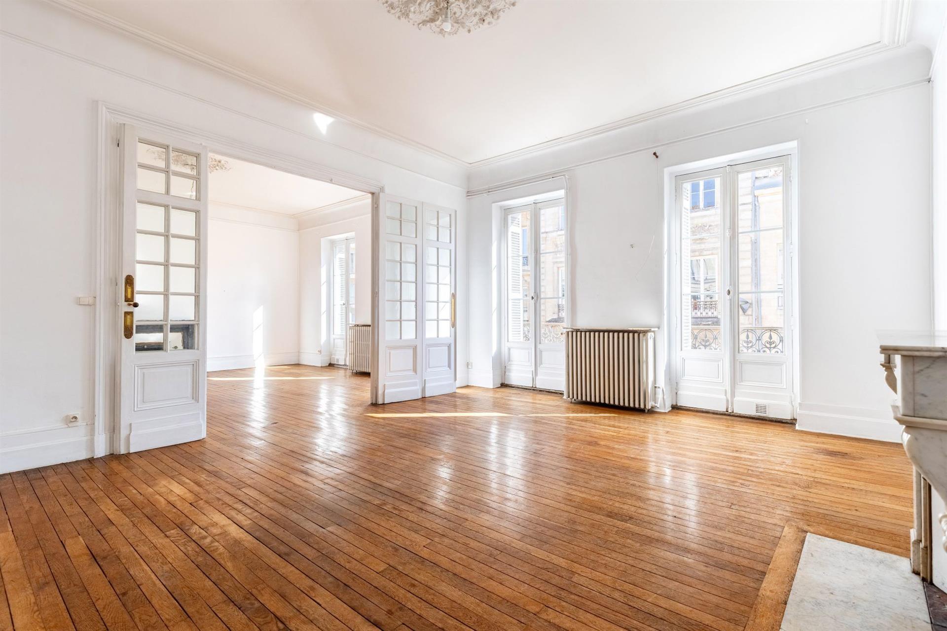 Situé en plein coeur du centre-ville à 2 pas de la Place Pey Berland, cet appartement de 211m2 est baigné de lumière tout au long de la journée grâce à ses nombreuses ouvertures.Niché au deuxième étage d'un très bel immeuble en pierre, cet appartement jouit de sublime volumes, d'un parquet d'origine, de magnifique cheminées en marbres, d'une hauteur sous plafond de 3m42 et ses nombreuses portes fenêtres donnant accès à un balcon exposé plein Sud.L'appartement se compose d'un spacieux vestibule, une grande pièce de vie de 64m2 et d'une cuisine indépendante de 24m2.La partie nuit au calme présente 3 chambres aux belles superficies, dressing, une salle de douche et wc indépendant assurant un confort optimal.il bénéficie d'un emplacement rare et recherché, à proximité immédiate des commerces, transports et lieux culturels emblématiques de la ville.Le cadre de vie est à la fois vivant et feutré, dans un quartier historique alliant élégance et confort de vie.Une cave complète ce bien soumis au statut de la copropriété.L'immeuble dispose également d'un local à vélos.Sandra Vincent: La présente annonce immobilière a été rédigée sous la responsabilité éditoriale de Sandra Vincent, agent commercial, immatriculée au Rsac de Bordeaux sous le numéro 807 388 061, de la Sarl Clave Immobilier. Les informations sur les risques auxquels ce bien est exposé sont disponibles sur le site Géorisques : inclus de 4.27% Ttc à la charge de l'acquéreur. Prix hors honoraires 820 000 €. Dans une copropriété de 6 lots. Aucune procédure n'est en cours. Classe énergie D, Classe climat D Montant estimé des dépenses annuelles d'énergie pour un usage standard : entre 750.00 € et 920.00 € sur les années 2021, 2022 et 2023 (abonnements compris). Les informations sur les risques auxquels ce bien est exposé sont disponibles sur le site Géorisques : . Votre conseiller Caze Home : Sandra VINCENTAgent commercial (Entreprise individuelle)