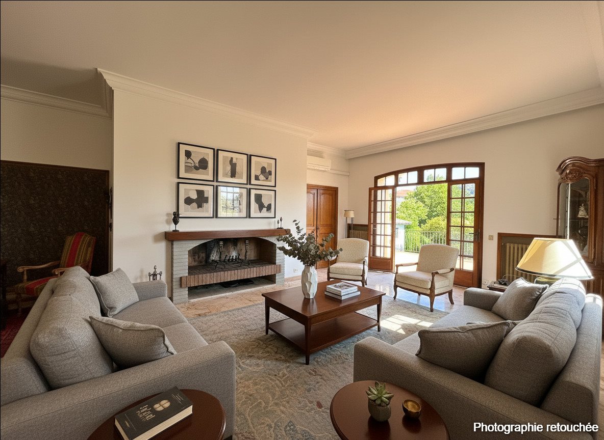 À seulement 15 minutes à pied du coeur historique d'Aix-en-Provence, l'agence Era du Comté d'Aix vous propose une propriété d'exception : une maison d'architecte des années 70, de 230 m² habitables, nichée au sein d'un écrin de verdure de 1 000 m². L'entrée de la propriété séduit par son atmosphère raffinée, ses volumes généreux et la lumière omniprésente qui habille chaque espace. Le lumineux vaste séjour de 49 m²et sa cheminée, s'ouvre sur une terrasse accueillante. La cuisine indépendante, prolongée d'une buanderie, allie fonctionnalité et discrétion. La suite parentale de 37 m² offre un espace intime avec dressing et salle de bain, comprenant baignoire et douche. Une deuxième chambre dispose également de sa salle d'eau privative, et trois autres chambres, toutes ouvertes sur la terrasse, partagent une salle de bain. Un bureau indépendant, pensé pour le télétravail ou une activité libérale. En rez-de-jardin, un garage et trois pièces annexes offrent un large éventail de possibilités : cave à vin, salle de sport, espace loisirs. La configuration permet l'aménagement d'une piscine, créant ainsi un cadre privilégié pour partager des moments en famille ou entre amis non loin du centre historique d'AIX En Provence dans le quartier de st Jérôme. Un bien rare, entre emplacement recherché et architecture élégante. Honoraires d'agence charge vendeur inclus. Pour plus d'informations ou organiser une visite n'hésitez pas à me Valérie Cheret Rsac 794 923 045 Ei Tel: