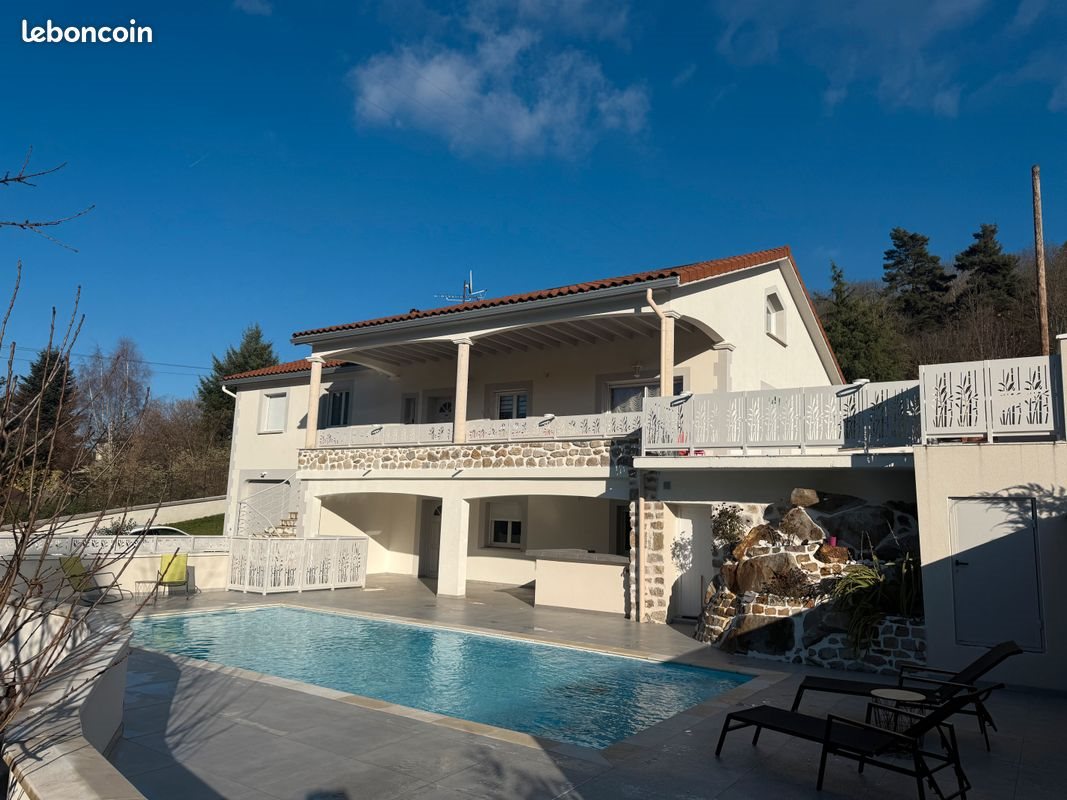 Villa spacieuse située dans un secteur calme (Quartier Gaffard), d’environ 300 m2, présentant quasiment aucun vis-à-vis, et implantée sur un terrain entièrement clos d’environ 1.500 m2. L’Accès au bien se fait par une voie privée. Elle est élevée sur trois niveaux lesquels sont composés comme suit : Au rez-de-chaussée : - un plateau aménageable d’environ 100m2 avec entrée indépendante, accessible également par le garage (possibilité de faire un appartement séparé….) - deux grands garages de grandes hauteurs pouvant accueillir jusqu’à trois voitures - un cellier, espace de rangement, ect... Au première étage : - une entrée spacieuse donnant accès à un grand salon/salle à manger lumineux avec grandes hauteurs sous plafond - une cuisine aménagée et équipée - un wc - trois chambres dont une chambre parentale - une salle de bains comprenant une baignoire et une douche - un cellier, placard de rangement, ect... Une mezzanine donnant sur le salon/séjour du premier étage comprenant : - deux chambres - une salle de bains avec baignoire et wc. L’Extérieur comprend : - une piscine à sel et chauffée, espace de rangement, local technique, large plage carrelée, - un pool-house composé d’un bar couvert avec accès à eau potable - une annexe composant sauna neuf, une douche à l’italienne et un wc - plusieurs terrasses dont une comportant un barbecue en pierre, un four à pizza traditionnel et un local de rangement. Elle est équipée des éléments ci-après listés : - une cheminée à bois située dans le salon/séjour - un plancher chauffant - une pompe à chaleur - deux climatisations réversibles - une chaudière à gaz. Idéalement située : à 3 min en voiture : - espace commercial composé de : Leclerc, Espace culturelle, Burger King, Gémo, Buffalo Grill, Darty, Centre Auto… - accès aux autoroutes direction Lyon et Le-Puy-En-Velay, à 5 min à pied : écoles primaires, arrêt de bus, pharmacie, coiffeur, restauration rapide, du parc de la commune nommé Agora pour enfants accessible gratuitement comportant terrains de basket, table de ping-pong, toboggan, Skate-Park…