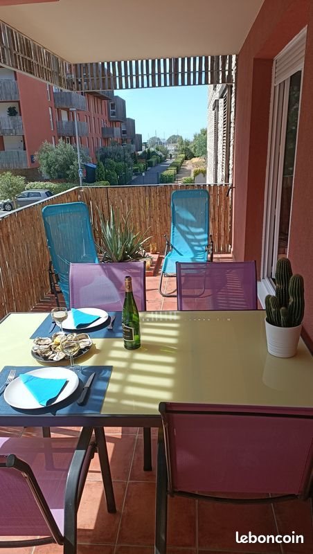 Appartement classé Touristique, au 1er étage avec ascenseur, dans une résidence de standing proche étang de Thau. Appartement 2 pièces de 43m² climatisé avec belle terrasse de 16m² et parking privé au pied du bâtiment. Coin cuisine ouvert sur le séjour (avec Clic Clac), chambre avec lit de 160 et placard, salle de bain avec Wc séparé. Cuisine équipée : réfrigérateur + congélateur, four, micro-onde, lave-vaisselle, lave-linge, Tv écran plat, radio Cd, grand ventilateur au plafond, cafetière, bouilloire, plancha électrique, fer et table à repasser, aspirateur... Terrasse équipée d’un salon de jardin. - cure à pied, par bus (ligne 10) ou par navette cure (ligne 14) à proximité de l’appartement ou encore par la piste cyclable (2 vélos mis à disposition) - 15 minutes en voiture des plages de Sète ou de Frontignan-Plages - 30 minutes en voiture de Montpellier Au plaisir de vous accueillir pour cures, au mois, à la semaine... Juste la taxe de séjour à prévoir en plus + un complément pour l’électricité si dépassement du forfait inclus. 7 nuits minimum Prix évolutif suivant la période. Après échanges sur la messagerie LeBonCoin, si disponible, je vous adresse un contrat de réservation.