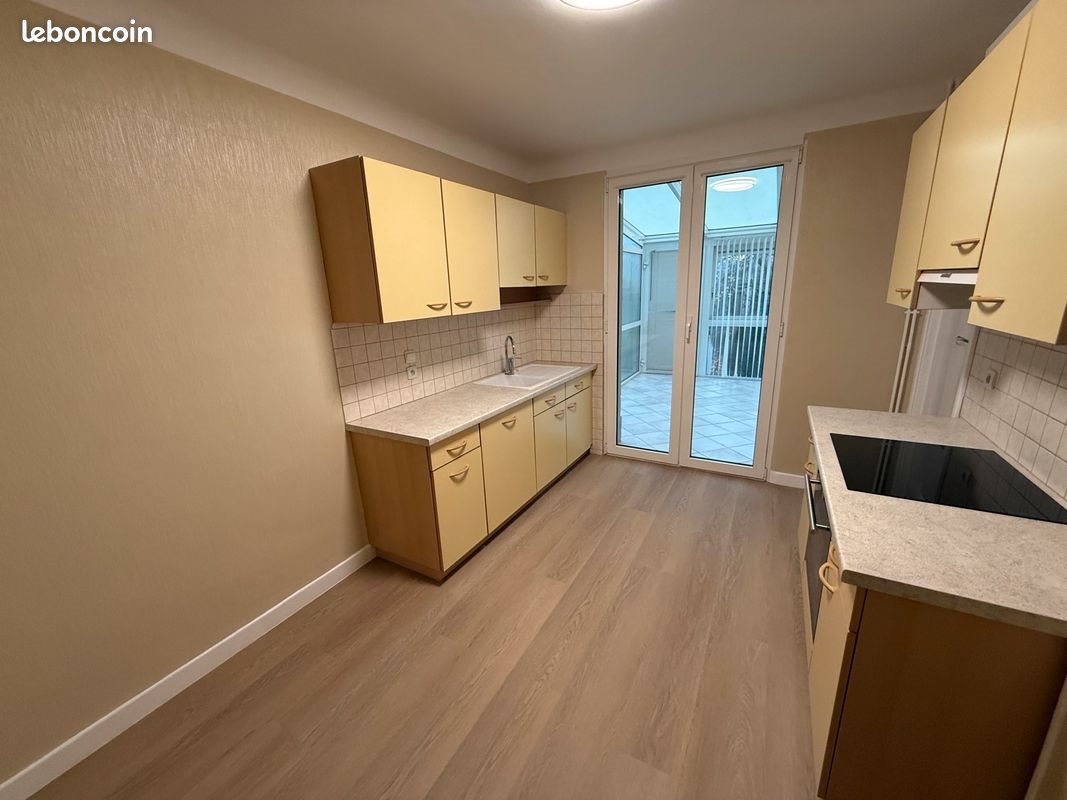 Dans un quartier calme et facile d’accès à l’entrée de Thann Maison accolée entièrement rénovée. Entrée, séjour, cuisine entièrement équipée, véranda, toilette et buanderie au Rdc. À l’étage : 3 chambres dont une avec dressing, salle d’eau avec toilette. Au sous-sol : cave de 50 m2 Chauffage ind. Gaz - Libre de suite. Extérieur : jardin fleuri et cour pour stationnement.