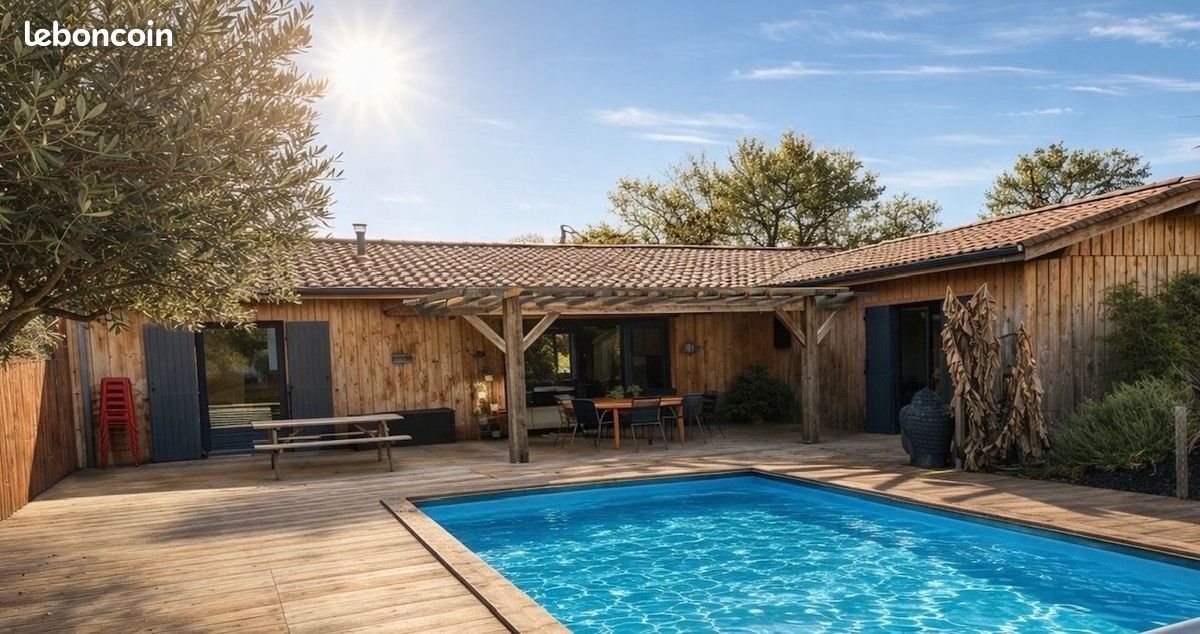 Magnifique maison en bois nichée au coeur d'un lotissement calme, entourée d'une forêt verdoyante havre de paix pour amoureux de la nature et du calme. 4 chambres dont une suite parentale avec salle de bain et dressing Belle piscine chauffée parfaitement intégrée dans le paysage Terrain arboré avec arrosage automatique Grande terrasse en bois avec cuisine d'été Poêle à granules, climatisation réversible... Dépendance de 20m2 Abris vélos Proximité Andernos, piste cyclable, école...