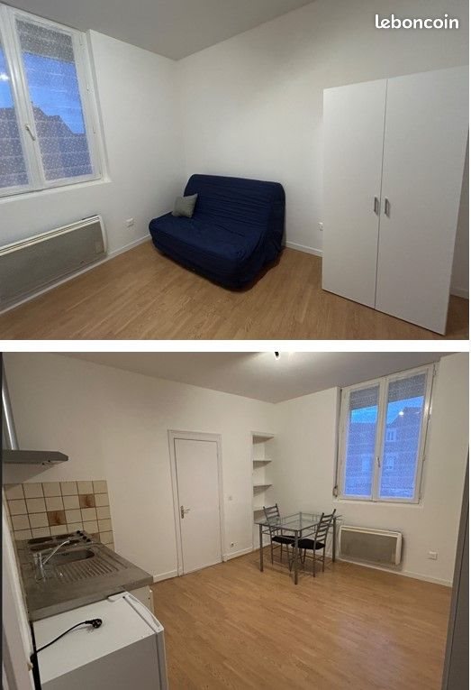 Centre ville Chauny, loue studio meublé 20 m² , Entièrement renové (isolation peintures électricité) placard donnant sur pièce principale. Très lumineux, fenêtre double vitrage avec volet, mobilier neuf, coin cuisine équipé kitchenette , Frigo, hotte aspirante salle de bain wc + douche + meuble, chauffage électrique. + 20 € charges (eau + tom)
