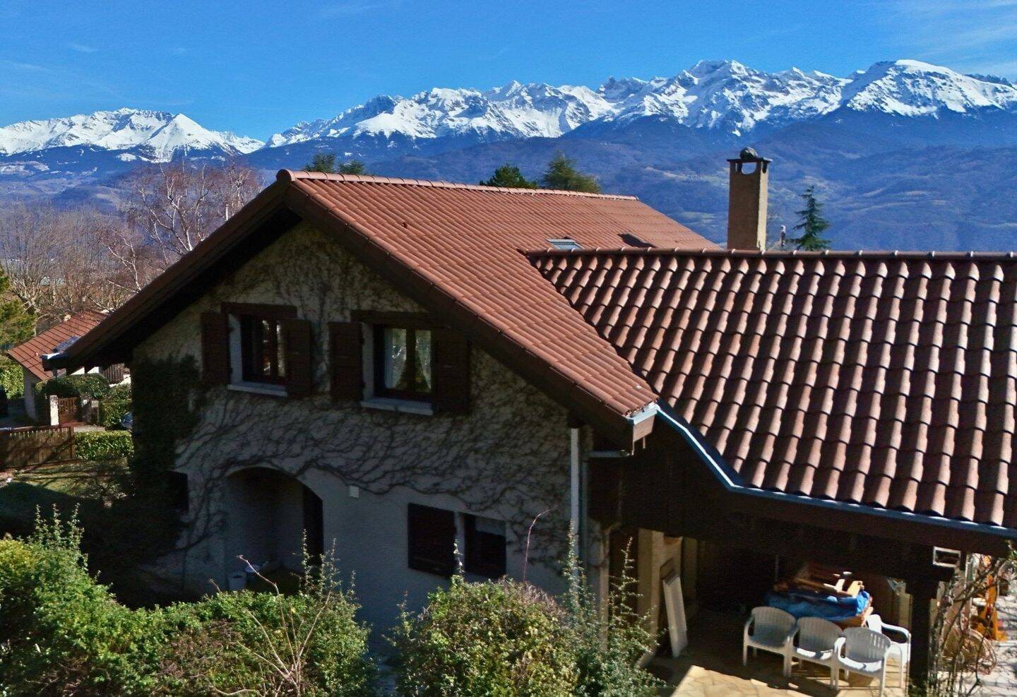 Mas 6 pièces 150 m² Exclusivité : sur les hauteurs de Saint-Ismier, au sein du lotissement prisé du Chaboud, une maison individuelle type mas dauphinois de 4 chambres + bureau d'environ 150 m2 habitable (164.57m2 au sol) réparti sur deux niveaux, avec plus de 94 m2 de sous-sol dont deux garages fermés. Implantée sur un terrain arboré de 1199 m2, elle bénéficie d'une vue exceptionnelle sur les massifs environnants au coeur d'une adresse porteuse et perenne. Visite Virtuelle Sur Demande Niveau 1 : entrée, grand séjour cathédrale, cuisine séparée (cloison abattable) avec accès sur terrasse Ouest couverte, une chambre avec accès sur l'extérieur, une terrasse Sud / Est une salle de bain et un Wc indépendant. Niveau 2 : à l'étage, un palier mezzanine distribuant trois chambres dont une avec accès balcon et vue imprenable sur les massifs alentours. Une des chambres, côté Nord, bénéficie d'une pièce adjacente supplémentaire servant actuellement de bureau. Une salle d'eau avec Wc complète ce niveau. En sous-sol, accessible également depuis l'intérieur, deux garages plus cinq pièces de rangement (actuellement 1 atelier, 1 buanderie, 1 réserve, 2 caves). Possibilité technique de créer un petit logement indépendant. Bâti très bien entretenu, isolation renforcée sous toiture refaite (2014). Prévoyez une enveloppe rafraichissement pour une remise au gôut du jour. Chauffage individuel électrique via pompe à chaleur et quelques convecteurs d'appoints. Résille au sol sous toute la partie séjour. Piscine collective au centre du lotissement, à 100 mètres de la maison. Bien en copropriéte totalisant 28 lots, sans procédure en cours. Charges de copropriété 62 Eur / mois comprenant 2.95 Eur / mois de fond de travaux loi Alur. Taxe foncière 2025 : 3018 Eur Dpe : D (238) Ges : B (9), coûts annuels estimés d'énergie entre 3240 Eur et 4440 Eur. Honoraires à la charge du vendeur. Contactez Alexandre Lazzaroni au [Coordonnées masquées] ou par mail : [Coordonnées masquées]. Agent commercial inscrit au Rsac de Grenoble () Surface : 150 m² Date de réalisation du diagnostic énergétique : Consommation énergie primaire : 238 kWh/m²/an Consommation énergie finale : 0 kWh/m²/an Montant estimé des dépenses annuelles d'énergie pour un usage standard : entre 3 240 € et 4 440 € sur les années 2021, 2022 et 2023 (abonnements compris).