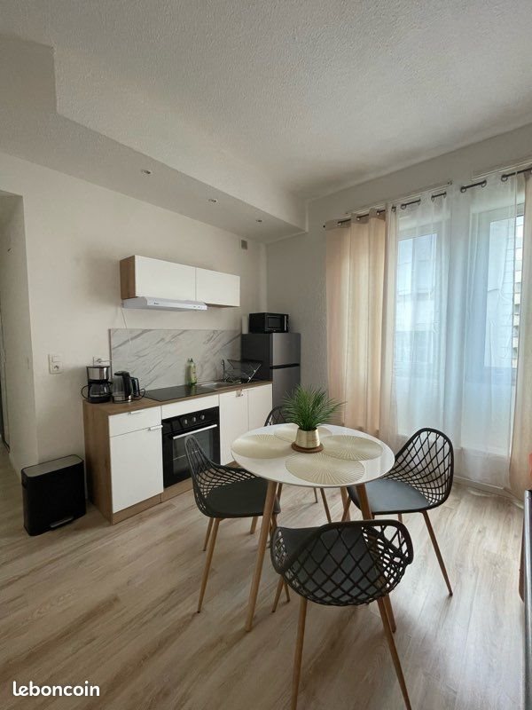 À louer, joli appartement T2 meublé de 42 m², situé dans un environnement calme et proche de toutes commodités. Entièrement équipé et récemment rénové, il est idéal pour une personne seule ou un couple. ? Pièce de vie chaleureuse : • Salon avec canapé confortable, meuble Tv en bois, télévision, éclairage d’ambiance • Table basse et déco minimaliste pour une atmosphère cosy ? Cuisine ouverte moderne : • Cuisine équipée avec four, plaques vitrocéramiques, hotte, frigo-congélateur, micro-ondes, cafetière, bouilloire, vaisselle incluse • Coin repas avec table ronde et 4 chaises design ? Salle de bain fonctionnelle : • Baignoire avec rideau de douche, meuble vasque, Wc • Machine à laver et rangements ? Chambre : • Lit double, penderie et rangements ? Les + : • Appartement lumineux avec grandes fenêtres et voilages • Parquet clair, décoration soignée • Étage élevé avec belle hauteur sous plafond • Internet possible, chauffage individuel électrique ? Localisation : Centre ville – idéalement situé à proximité des transports, commerces et services ? Loyer mensuel : 630 € charges comprise ( ordures ménagères + eau ) ? Disponible à partir du : 22 février ? Bail meublé – durée : 1 an renouvelable