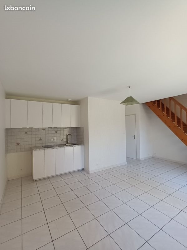 À louer T2 duplex dans longère Au rez-de-chaussée, pièce de 22 m2, avec Coin cuisine équipée (neuve), emplacement machine à laver, toilettes À l'étage, grande chambre avec placard, Salle de bains Pas de charges communes. Possibilité de louer un garage dans la cour au prix de 40€