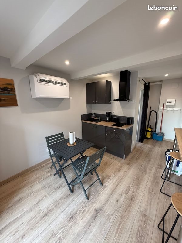 Loue Appartement meublé et équipé. Literie, Tv, Frigo, micro onde, plaque induction, hotte, cafetière, bouilloire, vaisselle et ustensiles de cuisine. Appartement rénové en 2023. Climatisation réversible.