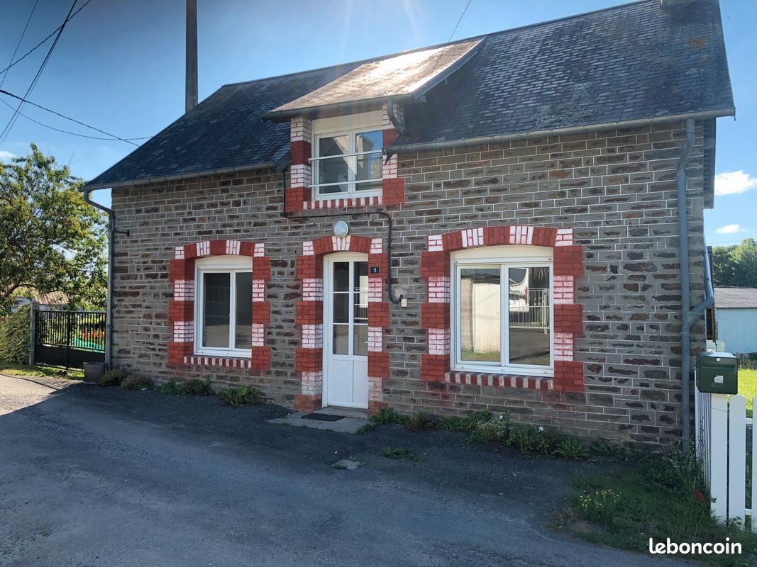 Maison avec jardin, salle, cheminée avec insert, coin cuisine, Wc, cave. A étage : 2 chambres, 1 salle de bains et Wc, un coin bureau.