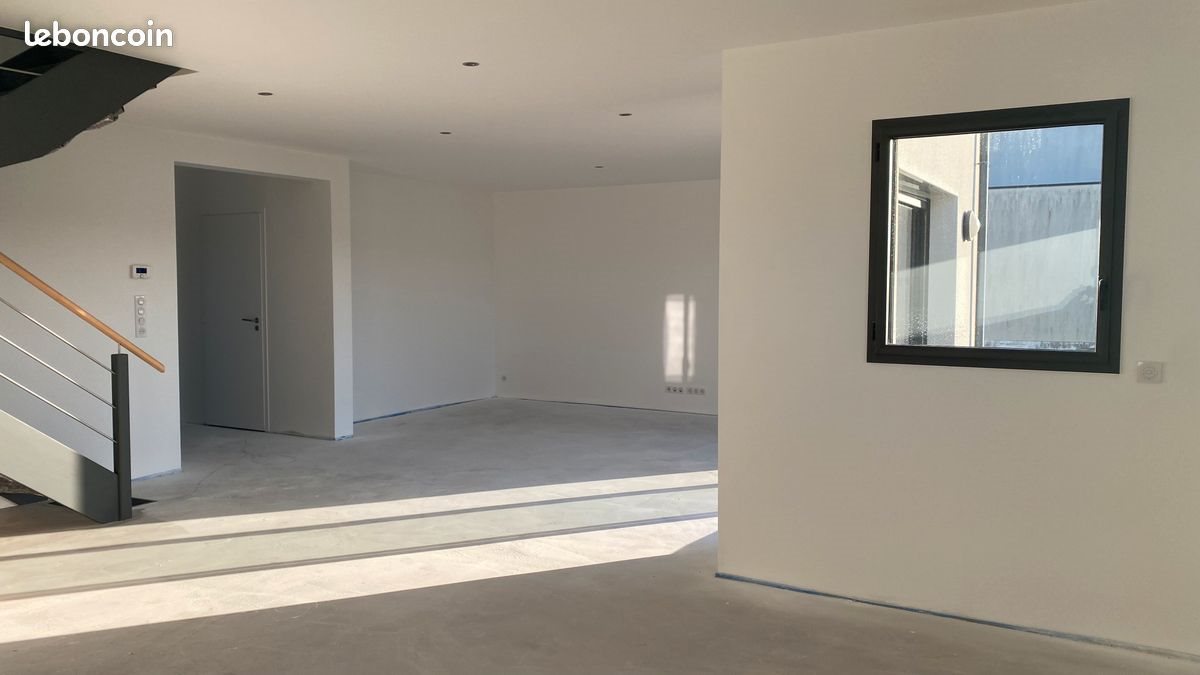 Maison neuve d’une surface de 111 m2 située dans un secteur idéal : à moins de 10 mn à vélo du centre-ville de Lorient, de l’Hôpital du Scorff ou de Naval Group en longeant le Scorff. Exposition plein Ouest offrant une vue très agréable sur le Scorff. Au rdc : espace salon/séjour lumineux avec cuisine ouverte aménagée et équipée (plaque induction, four, hotte). 1 chambre. Salle de bain avec douche et toilettes. Chauffage au sol. A l’étage : 3 chambres. Grande mezzanine pouvant servir de bureau. Salle de bain avec baignoire. Chauffage au sol. Extérieur et annexes : Garage de 23m2. Le jardin et la cour seront réalisés ultérieurement mais la maison est parfaitement habitable. Chauffage central et eau chaude par chaudière à condensation (gaz de ville). Volets roulant électriques sur l’ensemble des ouvertures. Loyer : 1800 euros + charges Dépôt de garantie : 2 mois de loyer hors charges Informations complémentaires : location de particulier à particulier : aucun frais d’agence, uniquement les frais de rédaction d’état des lieux (500 euros). Pour candidater : merci de me transmettre votre situation professionnelle avec niveau de revenus ainsi que votre situation personnelle. Sans ces éléments, je ne pourrai pas répondre.
