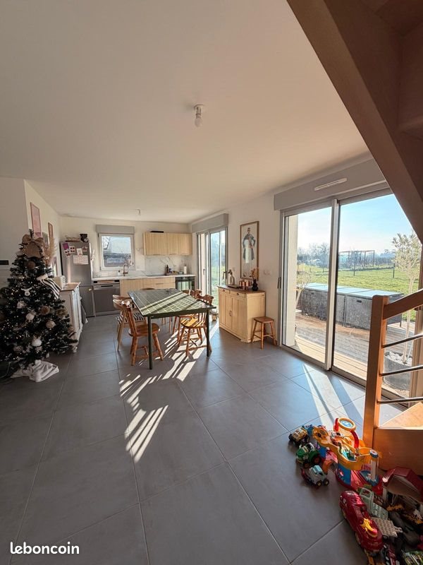 A louer, maison neuve (2024), 3 chambres, de 99m² sur un terrain de 520m². Avec garage et stationnements. Située dans un cadre privilégié, vous bénéficierez d'un cadre naturel tout en étant profitant de la proximité immédiate du centre ville d'Angers et des services urbains. Commerces à 5 minutes à pieds : boulangerie, boucherie, épicerie et drive. Gare tgv à 10 min en vélo ou en bus (arrêt à 200m) = Paris 1h22, Nantes 37min, Le Mans 43 min. Au rdc : Pièce de vie avec cuisine ouverte, buanderie, Wc La cuisine est équipée d'un ensemble de rangements linéaires, d'une plaque de cuisson, d'une hotte aspirante et d'emplacements pour réfrigérateur, four et lave-vaisselle. A l'étage 3 chambres, salle de bain, Wc Isolation moderne, chauffage et eau chaude sanitaire par pompe à chaleur donc coûts d'exploitation réduits (faibles consommations et pas d'abonnement gaz). En complément du jardin privatif, un espace collectif engazonné d'environ 1000 m² en fond de lotissement permet aux enfants de jouer au ballon sans risque et aux plus grands de profiter de la vue. Loyer 1283,21€/mois et 38€ de provision sur charge (régularisation annuelle au réel). Dépôt de garantie 1283€. Annonce déposée en nom et pour le compte de la sci érable immatriculée 912.595.212 au Rcs d’Angers