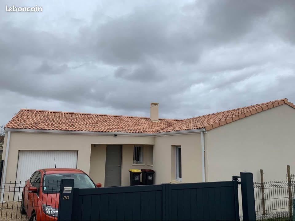 Particulier loue pavillon F5 à Fléac dans lotissement calme et proche écoles, commerces et toutes commodités. Année de construction 2018, Bbc, Rt 2012, maison bio climatique. 4 chambres, grande pièce à vivre avec cuisine équipée. Terrain clos, baies vitrées sur jardin, garage attenant 22m2. Loyer hors charges 990€, charges comprises 1030€. Références exigées, libre au 1er décembre 2025. Me de préférence par téléphone