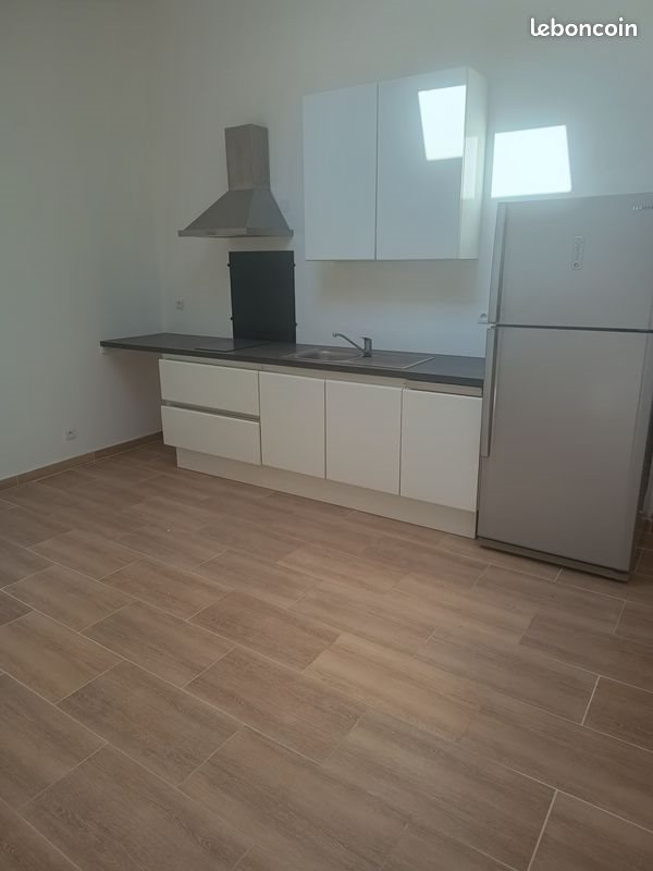 Location T2 dans maison de village entierement retaure de a à z comprenant une cuisine equipee piece à vivre une salle de bains douche italienne meuble vasque placards cham bre avec placards equipe penderie tiroirs etageres carrelage sur tout l'appart en rez de chausssee acces par porte cote rue une remise 20 m2 pour debarras velos motos possibilite buhanderie car eau et elect presente