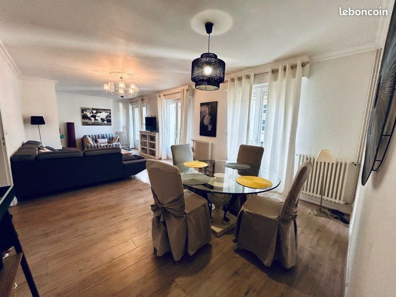 Grand appartement en ville cosy ,entièrement meublée de 122m2 en hyper centre, dans une rue calme, avec grand garage de 22m2. (Stationnement gratuit également dans la rue). Idéalement située à 2 pas des commerces, transports et autres commodités. Le logement se compose de la manière suivante Rez de chaussée : Entrée Machine à laver Possibilité pièce de stockage Premier étage : salon -séjour de 47m2 avec cheminée nombreux placard de rangement cuisine séparée de 17m2 avec puit de lumière entièrement aménagée et équipée , plaque induction, four, micro-ondes, lave vaisselle , frigo, vaiselle… Salle de bain avec grande douche à l’italienne, sèche serviette et placard de rangement Wc indépendant Au deuxième étage : chambre de 15m2 équipée lit double Chambre de 13m2 équipée lit double chambre de 9m2 traversante équipée lit simple et grand dressing une grande salle de bain avec baignoire et rangements. Pièce de stockage. Chaudière thermodynamique Chauffage gaz exposition Sud-Ouest Libre Caution : 2 mois de loyer+ 2 garants 2 derniers avis impôts+ 3 derniers bulletins de salaire Profil sérieux Maison non fumeur Loyer 990€ Visite possible Photos supplémentaires sur demande