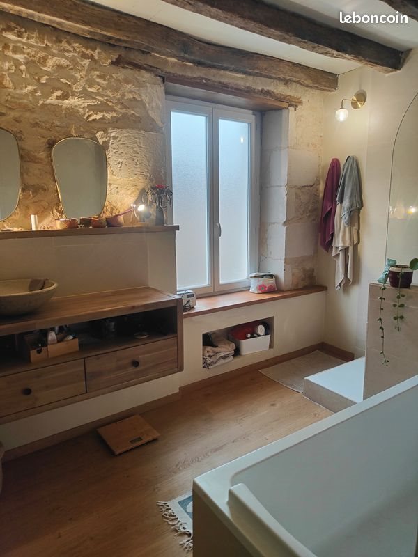 Maison typique de centre ville de Poitiers sur 3 étages, meublée. 1Etage: salon et cuisine 2eme étage : salle de bain, toilette, chambre, terasse 4eme étage : 2 chambres dont une avec un grand dressing, un toilette. Un cave avec rangement, évier, toilettes. Salle de bain neuve avec baignoire et douche à l'italienne. Très calme, on entend les oiseaux. Chauffage au gaz + poêle à bois. Machine à laver + lave vaisselle présent. Loyer : 850 euros Sans l'électricité et le gaz estimés à 100 euros par mois pour un couple + Place de parking pour une voiture et pour stocker le bois: 25 euros