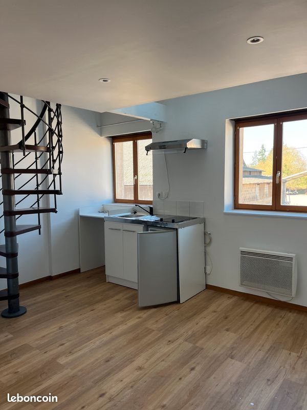 Studio de 20m2 avec mezzanine cuisine avec meuble de rangement et plaque vitrocéramique