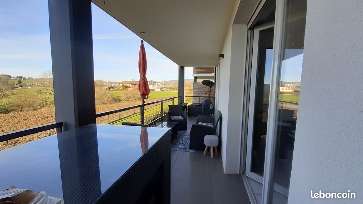 A louer dans une copropriété de 2018, T3 de 62,65m2 avec : terrasse de 17m2 + cave + place de parking extérieur privative + garage fermé avec point électrique. Entrée avec placard aménagé, belle pièce à vivre donnant sur terrasse couverte, cuisine équipée comprenant four, plaque de cuisson et hotte, 2 chambres avec placards aménagés, salle de bains avec meuble vasque et baignoire, wc suspendu indépendant, buanderie. Exposition sud-ouest, niveau 1 sur 2 étages, ascenseur, accès garage depuis l'intérieur. Proche de toutes commodités accessibles à pieds : supérette, boulangerie, boucherie, fleuriste, cabinet médical. Le village de Groisy compte une école primaire, un collège, un supermarché et de nombreuses associations sportives. Logement soumis au dispositif Pinel : plafond de loyer et de ressources. Groisy est situé en zone A depuis le 1er septembre 2025. Loyer comprenant garage et charges de copropriété = 1200 euros par mois Agence s'abstenir