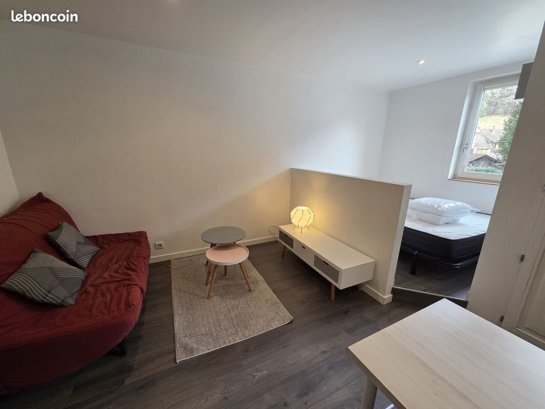 Studio avec belle cuisine dans la pièce à vivre. Petit balcon. Entrée équipée d'un grand placard. Lave- linge commun à [Url masquée pour votre sécurité] de parking privative et petite cave