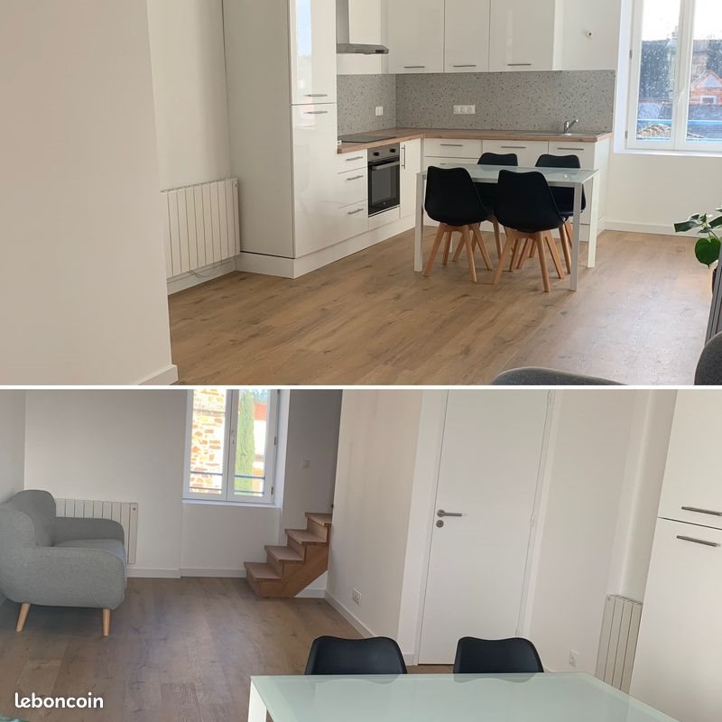 T2 duplex meublé d'environ 50m2 au sol avec de belles prestations dans le bourg du cellier, proche des bords de Loire et de toutes les commodités. Transport en commun : gare du cellier à 600m (rejoint en 17 min la gare de Nantes ou la gare d’Ancenis), bus Tan au pied de l’appartement. Commerces: boulangerie, Superette, bar tabac, coiffeur, boucherie, médecin, pharmacie, etc. Facilité de stationnement véhicule. Appartement duplex spacieux, calme et lumineux au premier étage refait à neuf en 2021 (isolation, électricité, chauffage, plomberie), parquet et belles hauteurs sous plafond. Il fait parti d’un petit collectif sécurisé de 3 appartements Pièce de vie traversante de 25m2 avec vue dégagée et sans vis à vis, exposition sud ouest. Cuisine ouvert sur le séjour, aménagée et équipée (hotte, plaque vitro, lave vaisselle, four, réfrigérateur et congélateur, vaisselles et ustensiles de cuisines). Une table en verre et 4 chaises scandinaves noires. Grande chambre de 15m2 carrez (18m2 au sol) avec vue sur Loire et la Varennes, grand dressing et literie de 140x190 avec matelas à mémoire de forme. Salle d’eau avec grande douche 90x120, meuble vasque, sèche serviette et emplacement buanderie pour lave linge et sèche linge. Wc séparé. Raccordement fibre dans le logement. Ce bien est complété d’un local deux roues commun pour deux appartements. 700€/Mois charges comprises Charges: eau et entretiens des communs. Me par message pour plus de renseignement, visite sur dossier.