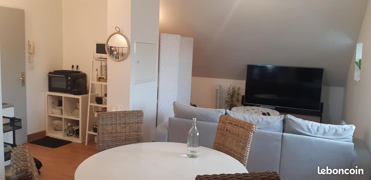 Loue Grand Studio de 38.74 m² surface au sol et 27.90 m² surface habitable Situé dans un petit immeuble à Nort sur Erdre. Appartement lumineux situé au 2e et dernier étage sans ascenseur avec interphone d'un petit collectif de 2 étages. Cuisine équipée (plaque cuisson + frigo) Chauffage électrique individuel 1 place de parking extérieur Libre immédiatement Loyer mensuel 560€ pas de charges Il reste à la charge du locataire son eau, son électricité et son abonnement poubelles. Caution 560€ demandée Cautionnaire physique demandé ( Organisme refusé )