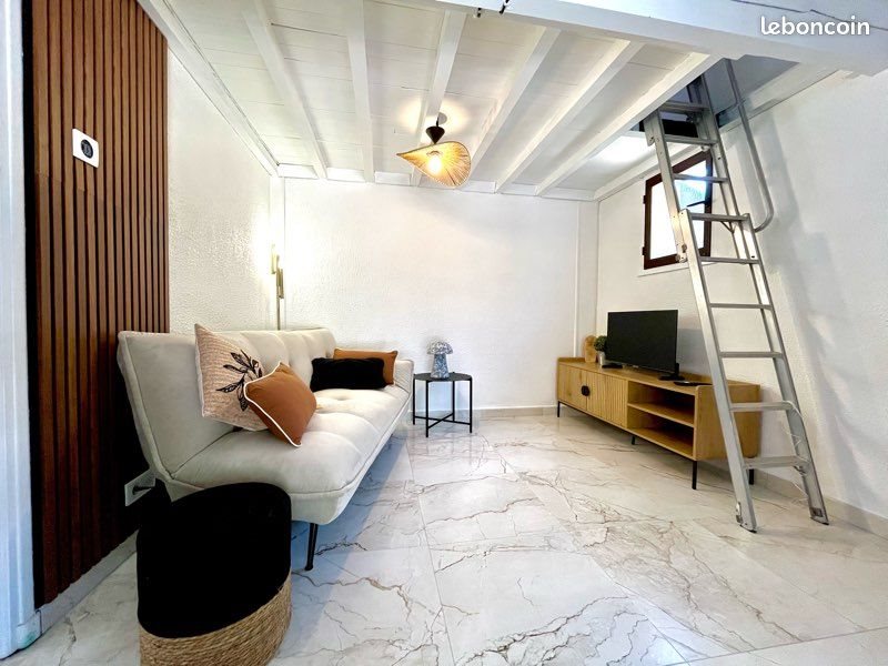 Studio disponible de février à mai Joli studio refait à neuf avec mezzanine , cuisine équipée , salle d’eau , terrasse jardin de 50 m2 . 600 Cc/mois Proche centre des Molini et plage Me