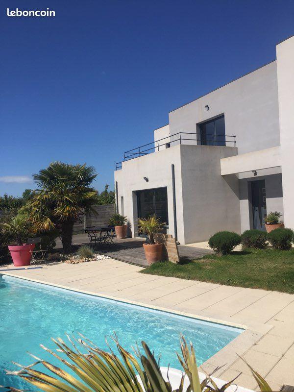 Maison contemporaine de 2010 avec piscine Grande salle salon cuisine équipée et salle de cinéma La maison possède 4 chambres dont 1 au rdc avec une douche à l’italienne et 3 à l étages avec une salle de bain Équipée de 3 terrasses extérieures dont 1 a l étage Le terrain est complètement fermé.
