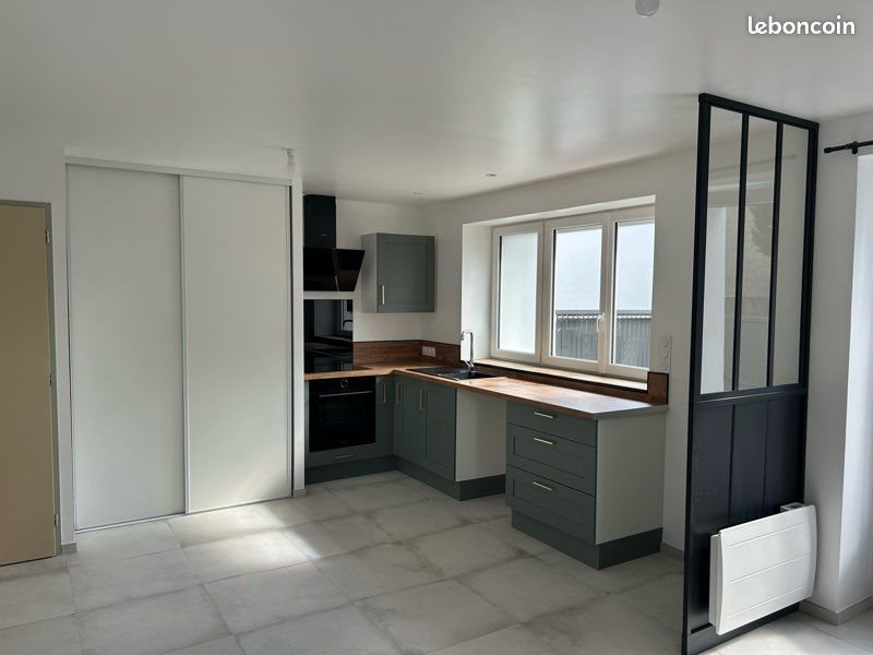 Logement de 75 m2 entièrement rénové . À l’étage 2 grande chambre (13m2 chacune), salle d’eau avec toilettes , douche, meuble vasque et sèche serviette . Au rez-de-chaussée une cuisine aménagée , un toilettes, et un espace salon . À l’extérieur une grande cour avec portail possibilité de stocker vélo moto et poubelle et un emplacement pour garer une voiture. Les charges sont de 150 euros par mois ( eau - électricité) et le loyer de 850 euros disponible tout de suite Le bâtiment est composé de deux logements