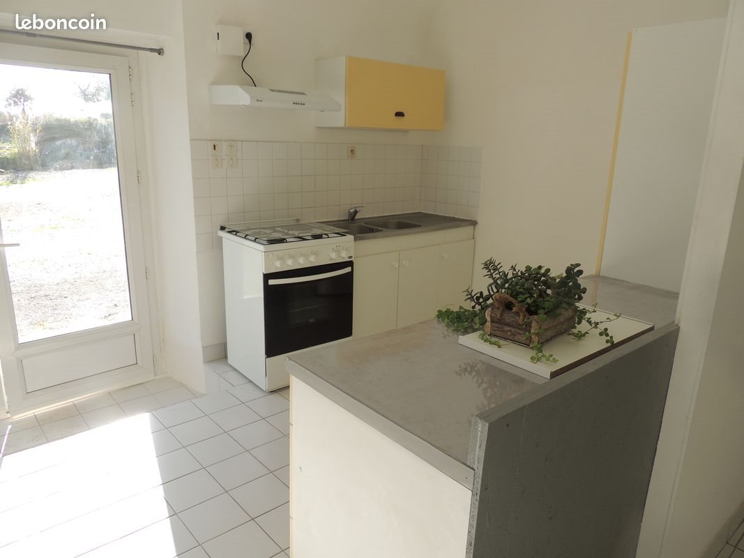 Appartement meublé en rez de chaussée d'une maison ancienne, à 500m du bourg. Façade exposée au sud, avec place de stationnement. A l'intérieur, une cuisine aménagée avec éviers, frigo, gazinière, nombreux placards. Salle et coin salon. Un Wc. Salle de bain avec baignoire. 2 chambres.