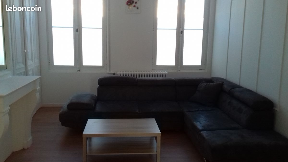 Centre ville , immeuble tranquille , digicode entrée , Rdc , avec petit jardin privatif , 3 pièces , une chambre , un salon , une cuisine coin repas , une pièce d'eau avec douche et wc , bien chauffé , mise à disposition de meubles gratuitement .