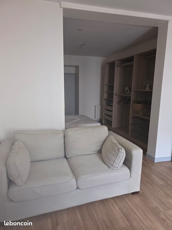 Appartement T2 meublé de 32 m² situé en rez-de-chaussée, fonctionnel et prêt à vivre. Les atouts du logement : Grand dressing dans la chambre (véritable espace de rangement). Canapé-Lit dans le salon, idéal pour recevoir. Appartement entièrement meublé. Chauffage individuel. Eau chaude individuelle. Agencement optimisé et facile à vivre. Composition : Pièce de vie avec coin salon (canapé-lit) et espace repas. Kitchenette équipée (réfrigérateur, gazinière, micro-ondes, cafetière). Chambre avec lit et grand dressing. Salle d’eau avec douche. Wc