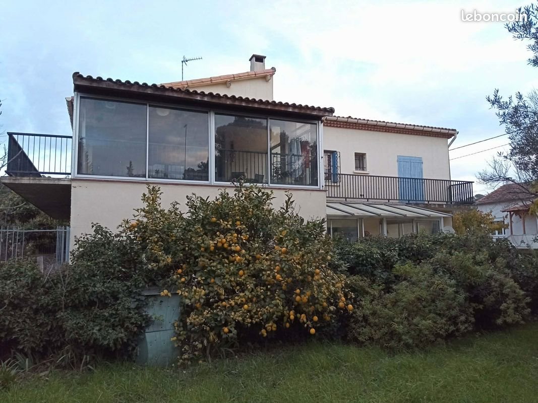 Grande maison Vintage des années 70 à rénover en partie. Composée de 2 appartements : Rez de chaussée : 2 chambres + 1 bureau (ou bar) salon/salle à manger/ cuisine ouverte, salle de bain avec douche, baignoire et toilettes et wc indépendant. Grande véranda. Accès au garage de 39m² par la cuisine. Au 1er étage : 1 suite parentale avec salle d'eau et 3 chambres, salle de bain, wc indépendant, cuisine familiale et salle à manger/salon donnant sur la véranda qui surplombe le jardin. Balcon au sud et à l'ouest. Grenier isolé avec laine de roche et espace de stockage. Terrain piscinable et constructible. Poulailler, chenil, arbres fruitiers (olivier, amandier, figuiers, néfliers...) et Forage !
