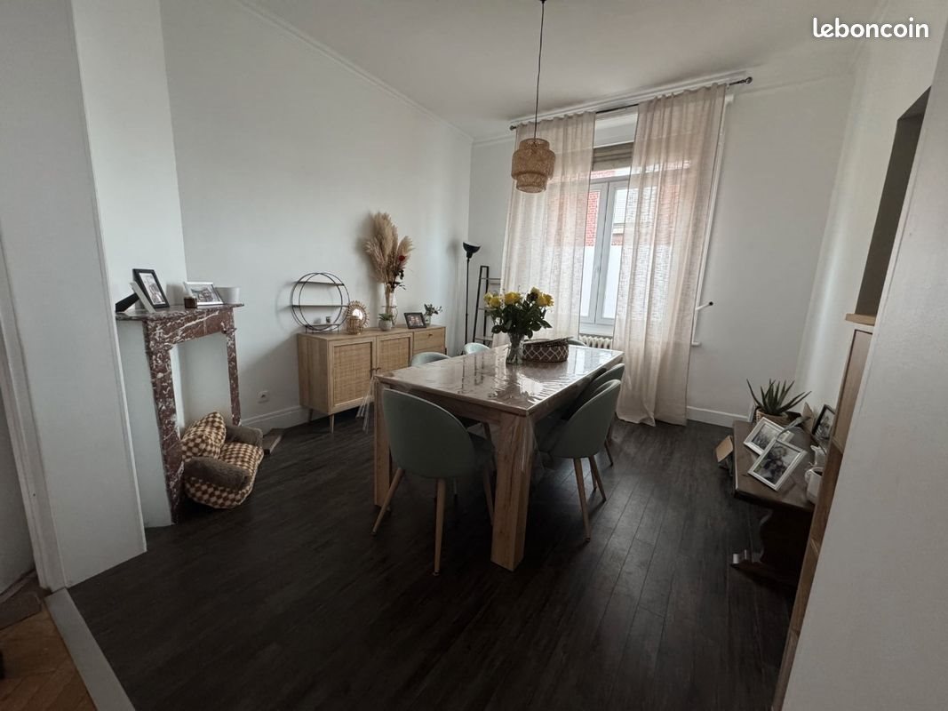 ? Maison Lumineuse d'environ 90m2 – Cambrai (59400) – Quartier Saint-Roch – 800€/mois ? Localisation idéale proche du centre ville cette maison allie charme et modernité. - un salon spacieux parquet, baigné de lumière naturelle traversante grâce aux 2 grandes fenêtres. - une cuisine équipée avec plan de travail bois, plaques de cuisson, hotte, et espace repas. - 2 chambres spacieuses ainsi qu'une pièce de moins de 9m2 qui sert actuellement de dressing. - Une salle d'eau récente avec douche à l’italienne, lavabo sur meuble bois. ? Équipements: - Chauffage central (gaz) - Double vitrage - Grande cave avec espace buanderie ? Extérieur : - Cour avec accès rue et garage ? Loyer 800€ (charges non incluses) Caution : 1 mois de loyer ? Disponibilité : Disponible à partir du 1er Avril 2026. Pour visiter ou obtenir plus d’informations, n’hésitez pas à me .