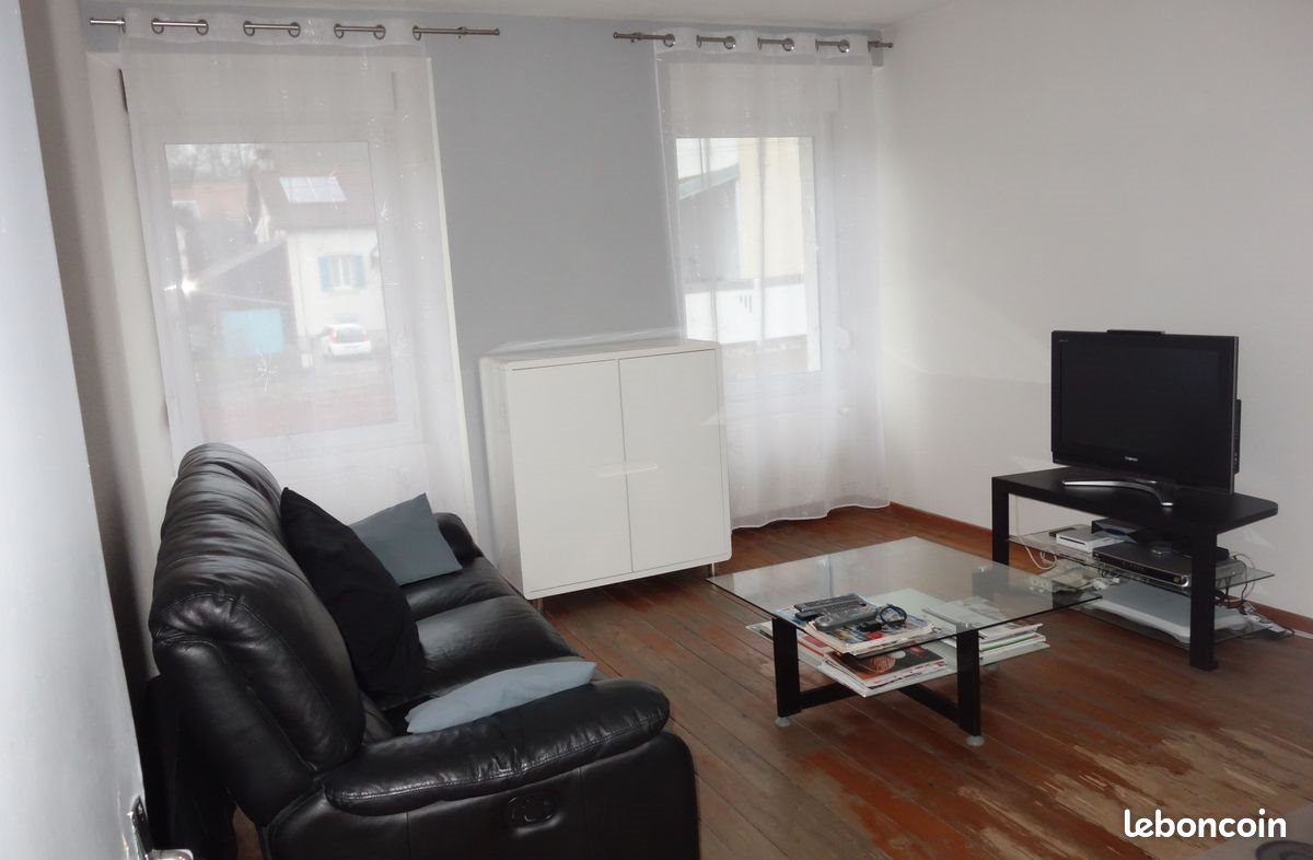 Loue appart. T3 de 73m² à Fesches le Ch. Au rez de chaussé, 1 salon/Salle à manger, cuisine ouvrete, sdb, wc, 2 Chambres à l'étage. Chauffage individuel au gaz. Grand grenier, stationnement facile sur parking gratuit et à proximité immédiate. 490 € Charges comprises (eau froide, ordures ménag.).