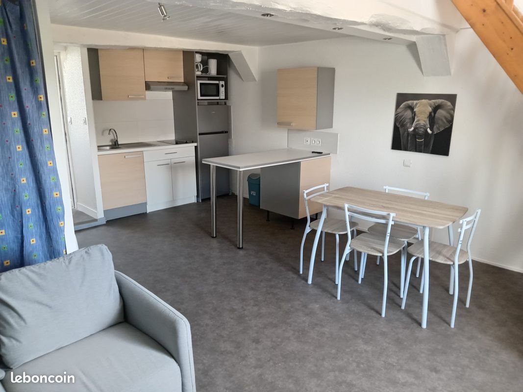 Appartement de 42m² meublé à St Grégoire à 15 minutes de Rennes. L'appartement dispose d'une cuisine équipée, un coin salon avec canapée et une table à manger, une salle de bain avec baignoire et machine à laver ainsi que d'une chambre à l'étage avec lit double, armoire et bureau. Un abri à vélo est aussi à disposition dans la cours de la résidence. Le logement est situé dans le quartier calme maison blanche avec des commerces de proximité (boulangerie, boucherie...) ainsi qu'à deux pas d'un arrêt de bus.