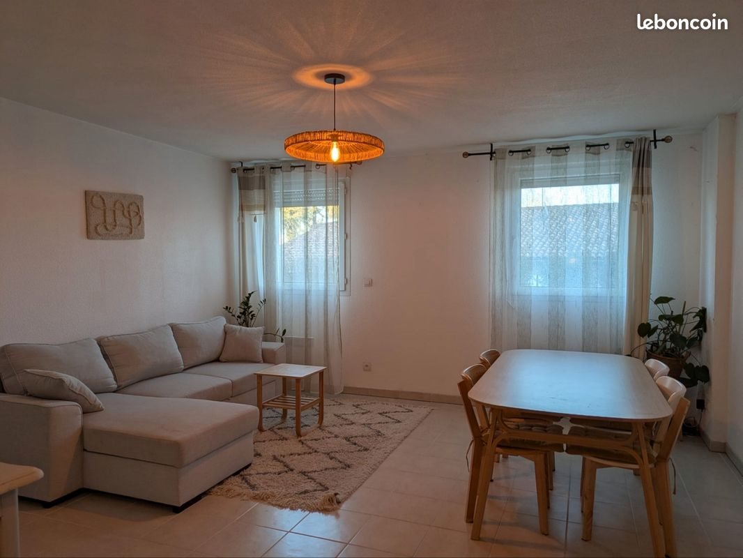 Appartement de rez de chaussée de 60 m2 habitables, composé d'une pièce de vie ouverte sur la cuisine aménagée et équipée, deux chambres avec placard, une salle de bain. Il dispose également d'une place de parking. L'appartement est meublé. -1 Lit de 140 -1 Canapé Lit -1 Table avec 4 chaises -1 Frigo -1 Lave vaisselle -1 Lave linge -1 Plaque de cuisson -1 Four - Vaisselles Si certains meubles ne vous intéresse pas,ils peuvent être repris. Disponible .