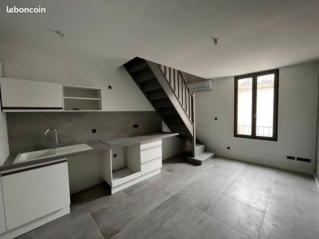 Appartement entièrement refait en 2022 au premier niveau séjour cuisine ouverte et salle de bains Wc et au dessus tres grande chambre bureau avec salle d'eau Wc.