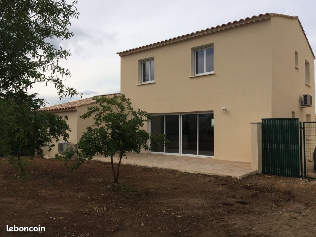 Villa de 2019 de 122 m² sur terrain clos de 400 m². La villa sur un étage se décompose comme suit : Rez de chaussée : Très lumineuse grâce à une grande baie vitrée la pièce à vivre de 60 m² avec cuisine ouverte, garage de 30 m² et un wc avec lave mains. Terrasse exposée au sud. 1Er étage : 4 chambres avec placard, une salle d'eau avec wc. Tous les volets sont électriques. Le rez de chaussée est climatisé. Le loyer est de 1000 euros/ mois hors charges (eau, électricité et poubelle que vous payez de façon indépendante). La maison est disponible le 17 avril 2026. Nous demandons 3x le loyer en salaire net en Cdi hors période d'essai. Nous ne prenons pas en compte les aides diverses.