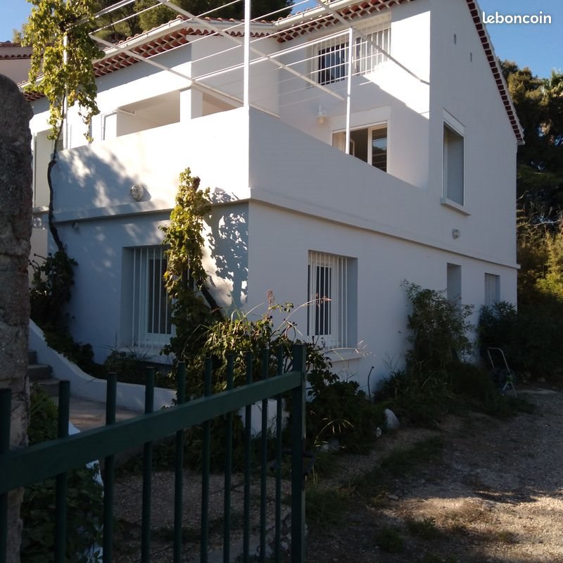 Dans un havre du soleil et verdure , maison provençale comprenant au rez-de-jardin 2 chambres avec salle d'eau Wc, rez-de-chaussée salle à manger avec cuisine équipée, salon ,2 chambres salle de bains avec baignoire, Wc et donnant accès à 2 chambres de jeux mansardées. Belle terrasse plein sud inondée de soleil avec vue mer .Beau jardin de 740 M2 avec grand parking au fond d'une impasse. A 200 M une plage sauvage abritée par le vent " Mistral".