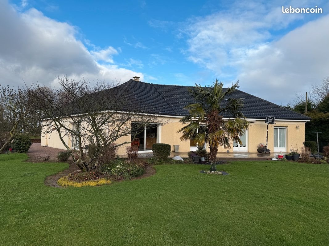 Beau pavillon de plain pied construit en 2006 comprenant une entrée de 9 m2 donnant sur un large séjour de 41 m2, cuisine aménagée et équipée de 19 m2, 3 chambres (12,12 et 14 m2, bureau de 11 m2 pouvant faire office de 4ème chambre, 2 salles d'eau, 2 wc séparés. Grand garage de 43 m2. Terrasse, nombreux parkings. Parfait état. Le tout sur un terrain de 3200 m2 environ entre Yvetot et la mer. Taxe foncière 1119 € par an.