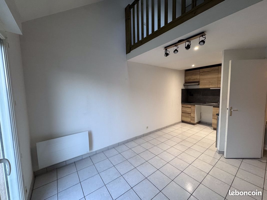 Loue T1bis en duplex de 31 m² avec terrasse privative comprenant au rez-de-chaussée, une entrée avec rangement, séjour/salon avec cuisine aménagée (évier, plaque de cuisson, hotte, frigo) et Wc. A l'étage, une chambre mezzanine avec placard et une salle de bain avec douche. Proche de toutes les commodités : centre ville, lycée raoul Vadepied, proximité de chez Bel place de parking privative Chauffage électrique. Garant physique exigé, pas sérieux s’abstenir Appartement libre Loyer 330 euros et 10 euros de charges ( entretien espaces verts) soit 340 euros