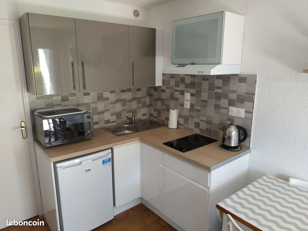 Conviendrait étudiant(e) ou lycéen(ne). Studio meublé de 20 m2, en rez de jardin, situé à Guidel, à 20 minutes de Lorient en voiture, exposé Sud, dans résidence privée avec jardinet clos + terrasse couverte donnant sur espace vert. Place de parking privative, numérotée devant studio. Cuisine équipée. Clic-Clac. Lave-Linge, fer à repasser. Salle de bains avec baignoire. Loyer mensuel : 380 € dont charges collectives et taxe d'ordures ménagères. Charges à prévoir : eau + électricité selon consommation.