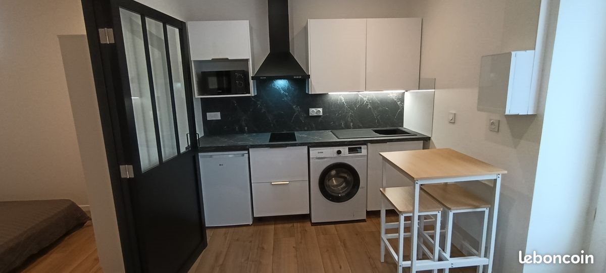 A louer appartement T1bis refait à neuf tout équipé (lave-linge, micro-ondes, frigo...) au 1er étage d'un petit collectif donnant sur cour. Chambre séparée. Très au calme. Proche de toutes commodités (supérette , boulangerie) et au pied d'un arrêt de bus (C4). Libre au 1er mars 2026. Dpe réalisé le 23/2/2026. Classé D.