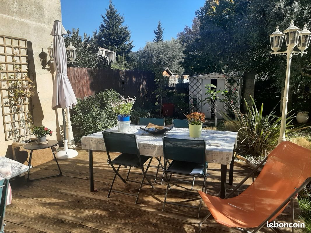 Maison de ville de plain pied entièrement rénovée en 2023. Avec jardinet d'entrée et jardin arboré (olivier mimosa..) de 100m2 côté espaces verts, avec petit abri Entrée sur grand espace séjour/cuisine équipée ouverte + cellier. Véranda de 10m2 donnant sur le jardin, Dégagement vers l'espace nuit et la salle d'eau. Deux chambres avec placard/dressing Buanderie, Wc indépendant. Garage de 15m2. Vmc. Climatisation réversible salon/séjour + dans les chambres (pompes à chaleur) A proximité du centre village et de tous les commerces (10mn à pieds) ainsi que du Petit Lac d'Eyguières et des canaux. Très bel environnement pour des balades. Petit lotissement très calme, copropriété faibles charges : 400€/an