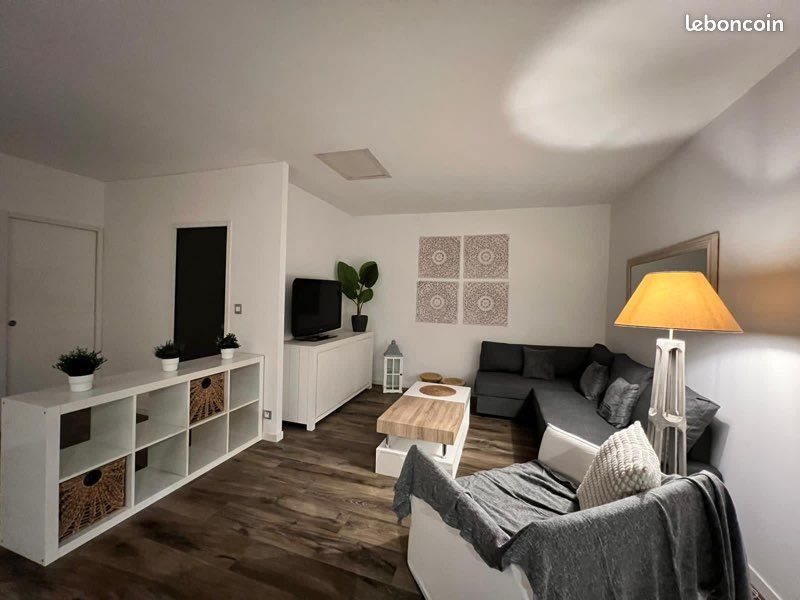 Petit cocon Location meublée Lormont 77m2 + Jardin au calme 80m2 Loyer : 1150€ Jolie maison de plain pied type loft de 77 m2 avec 80 m2 de jardin située dans le quartier du vieux Lormont. Situation géographique idéale à 200m du tramway et 300m du BatCub Ce plateau de 77m2 est tout équipé. Il comprend suite parentale avec un grand dressing, une salle de bain équipée d’une baignoire balnéothérapie, d’une douche Terrasse au calme équipé d’un salon de jardin tout confort. Lave linge, seche linge, lave vaisselle intégré, écran plat dans le salon et la chambre. Une place de parking La maison fait partie d’un petite copropriété qui est un véritable havre de paix. Disponible le 28 décembre 2025 Loyer : 1150€