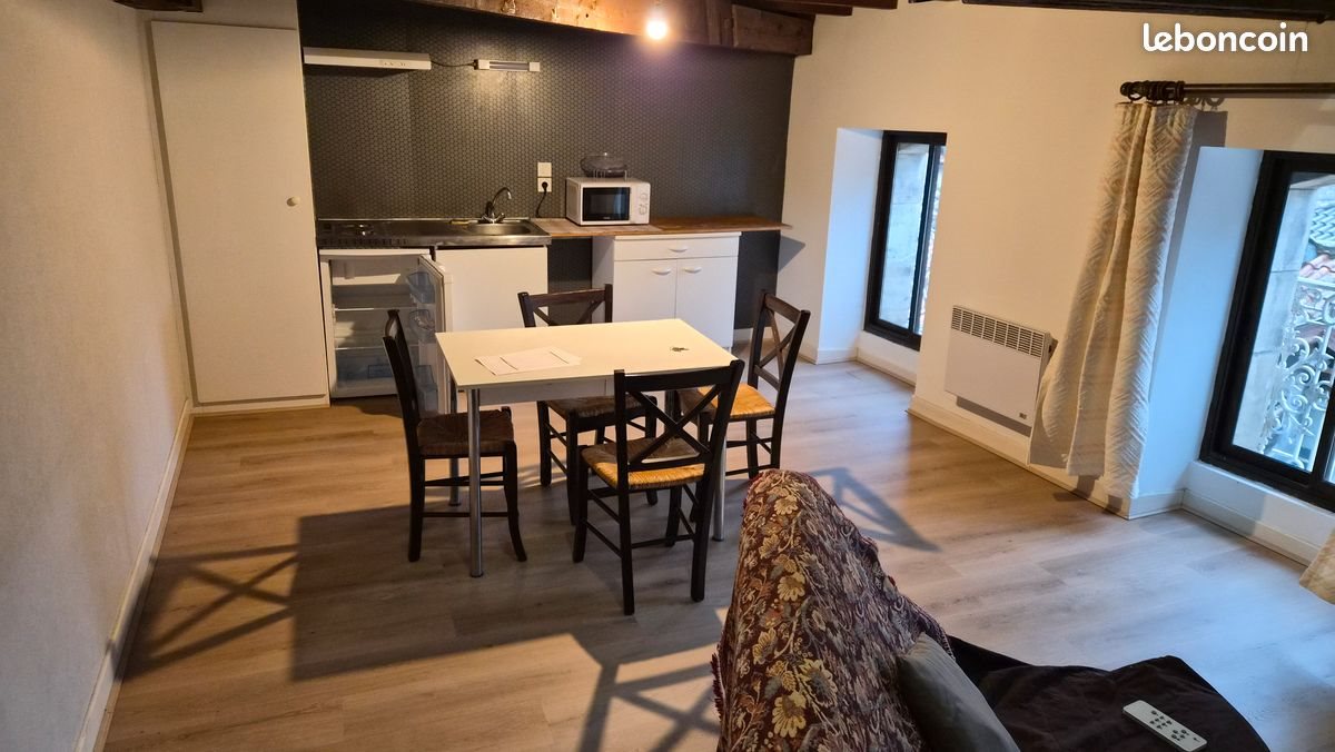 Loue au 4ième et dernier étage sans ascenseur d'un immeuble bourgeois à l'entrée sise 6 rue des orfèvres à Villefranche de Rouergue, agréable, lumineux et vaste studio duplex de 48m² habitables (60m² au sol) meublé , Sdb avec baignoire, Wc séparés, sans vis à vis, chauffage électrique double vitrage et climatisation réversible, kitchenette équipée, eau chaude par cumulus Possibilité parking deux roues en sus à 800m Libre 03/2026 loyer : 390€ + 30€ d'avance sur charges décocher la rubrique en bleu 'voir le numéro' sur l'annonce du bon coin