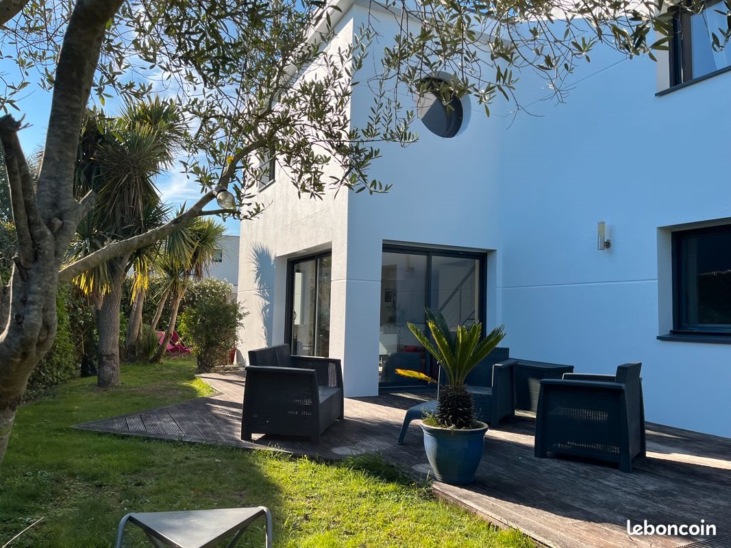Larmor Plage , Belle Maison contemporaine de 139 m2 non mitoyenne disposant de 4 Ch avec un agencement très fonctionnel. Toutes les pièces sont exposés Sud et offrent une vue sur ce magnifique jardin de 628 m2 env. Sans vis à vis . Le bien est situé dans un quartier calme et recherché de cette station balnéaire avec une proximité des commodités et à 1,7 km des plages. Au Rdc : - Cuisine équipée ouverte sur vaste séjour très lumineux - Arrière cuisine - Espace parental avec une belle chambre, douche et dressing A L'etage : - 3 Belles Chambres, Salle de bains et une pièce dressing - Grand garage - Deux places de parking - Deux Grandes terrasses - Chauffage par le sol - Ravalement récent Energie C /138. Ges C /27 Montant des dépenses annuelles d'énergie pour un usage standard compris entre 1800€ et 2480€ par an. Prix moyen des énergies indexés sur les années 2021, , les informations sur les risques auquel ce bien est exposé sont disponibles sur [Url masquée pour votre sécurité] Agence s'abstenir. Merci pour votre compréhension.
