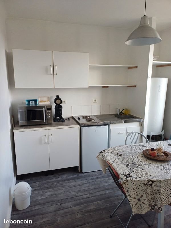 A louer studio de 26m2 situé dans une petite copropriété à 5min du centre ville de Quimper. Le studio dispose d'une pièce à vivre avec son coin kitchenette et une chambre avec lit Bz, tv , internet et armoires. Loyer : 470 € L'électricité sera à la charge du locataire qui devra souscrire à un abonnement. Appartement idéal pour étudiants ou jeune travailleur. ( pas sérieux s'abstenir). Cordialement.